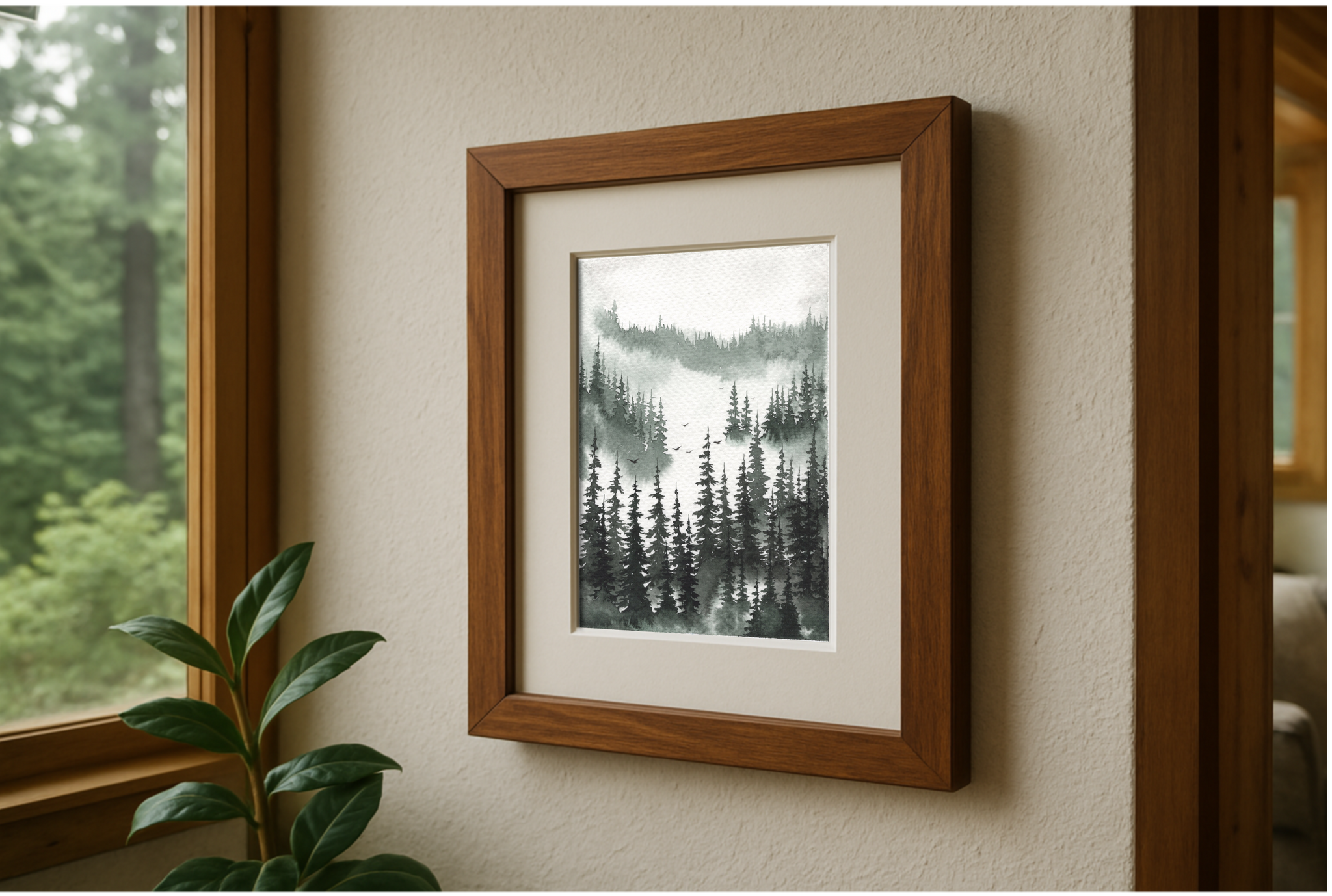 Drawn from quiet mornings watching the clouds drift through the forest, this piece captures the stillness that lingers between each tree. Inspired by the view from my backyard, where mist and cedar scent the air, reflects the way sound softens when the world is wrapped in fog and only the ravens break the silence.